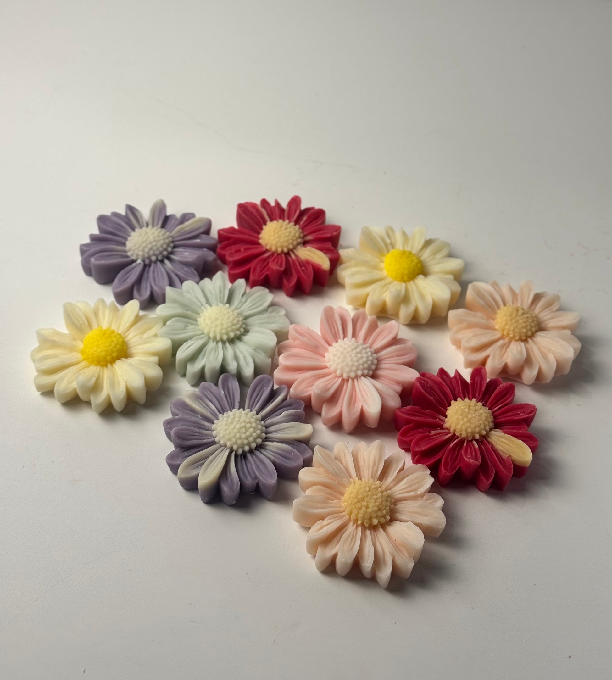 Our Daisy Duo Melt Set embodies the cheerful elegance of springtime in two delicate daisy designs. Hand-poured with our cocosoy wax blend, each melt releases a soft, refreshing aroma that brightens any space. With its playful shape and varied scents, this duo is perfect for adding a touch of floral bliss to your home or gifting to someone special.