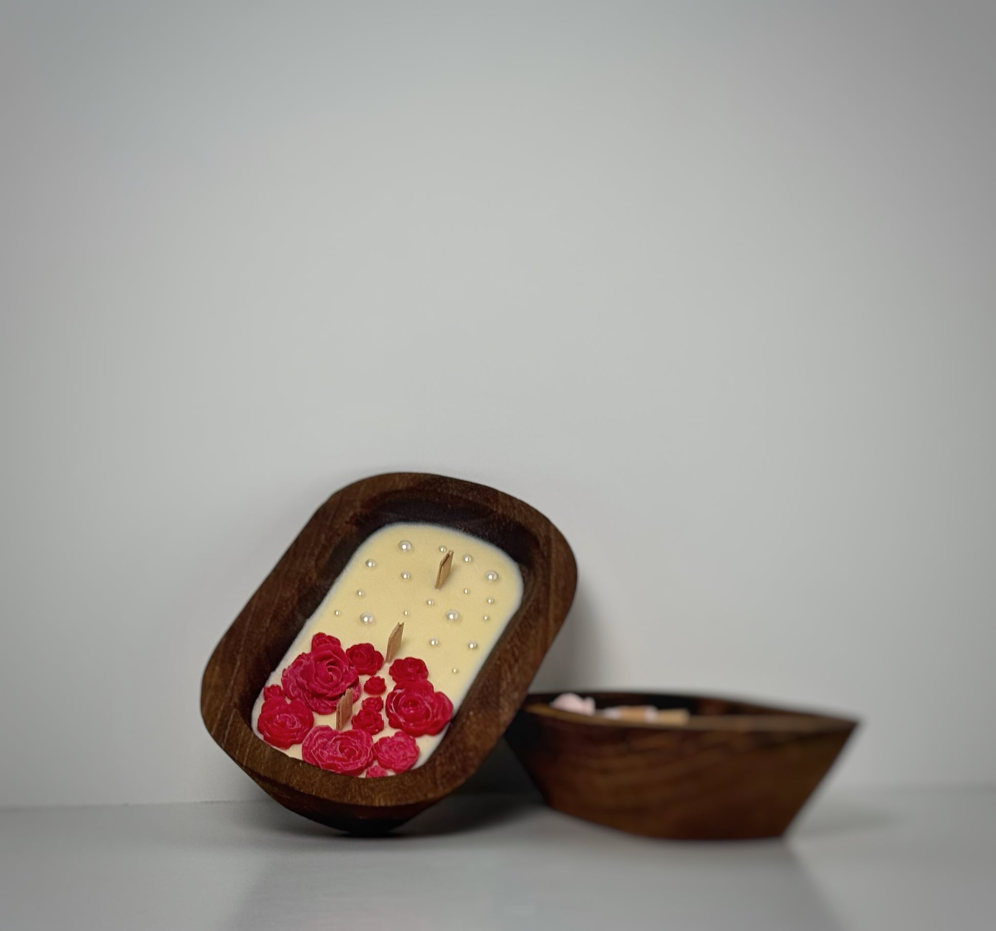 Crafted from natural wood and hand-poured with 7.5 oz of premium soy wax, the Oval Wooden candle blends rustic charm with elegant simplicity. Each bowl measures approximately 8.5" L × 5" W × 2" H, making it a standout décor piece while filling your space with captivating aromas. The natural grain of the wood ensures every candle is truly one of a kind.